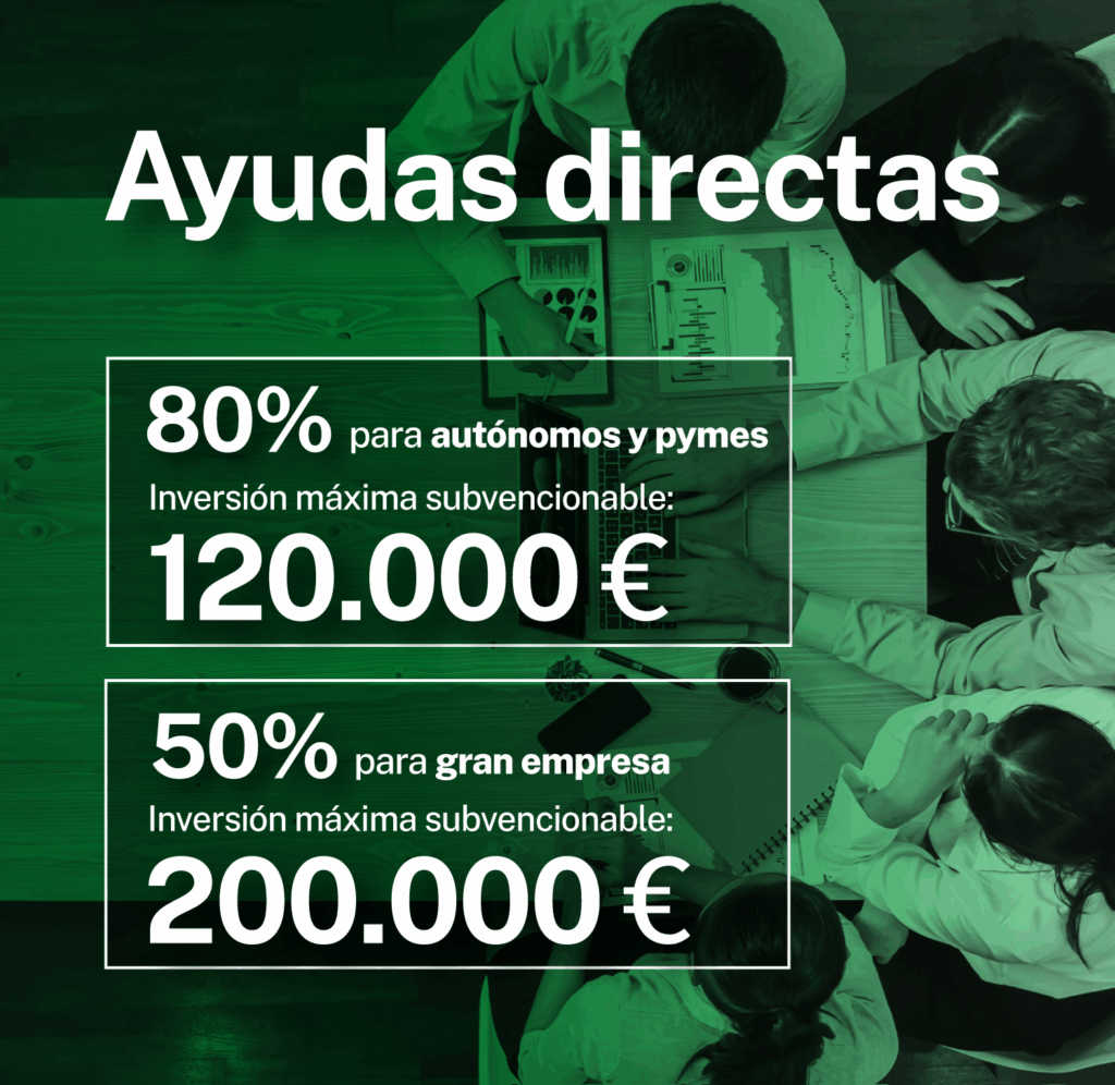 Subvención del 80% para pymes de cualquier forma jurídica, incluido autónomos. La inversión máxima de gastos subvencionable será de 120.000 euros (IVA excluido).